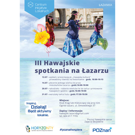 - 21.07 warsztaty tańca hula godz.17:30-19:30 (Klub Krąg lub Ogród Łazarz)