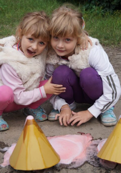 Dwie dziewczynki uśmiechające się i bawiące się w pisaku. Pobierz baner (JPEG, 128,33 kB)