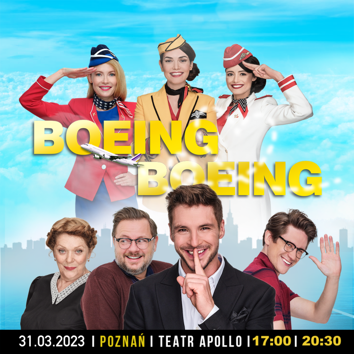 "Boeing, Boeing" to jedna z najczęściej wystawianych komedii na świecie. Ten lot nie powoduje turbulencji, a jedynie mnóstwo śmiechu. Sztuka autorstwa Marca Camolettiego zawiera wszystkie składniki dobrej farsy. Dodatkowo dobry humor gwarantuje wspaniały przekład tekstu, którego dokonał twórca dialogów w polskiej wersji filmu animowanego "Shrek" - Bartosz Wierzbięta. Bohaterem sztuki jest Maks. Znalazł on rozwiązanie pozwalające korzystać z wszystkich zalet poligamii unikając jednocześnie jej wad. Jego kochanki-narzeczone są stewardessami pochodzącymi z trzech różnych krajów i pracującymi w trzech różnych liniach lotniczych. Najważniejsze to oponowanie rozkładów lotów. Ustalony porządek burzy... postęp. Nowy Boeing jest większy, ma większą moc, jest szybszy. I wydarzy się nieuniknione- zmiana rozkładu lotów. Popsuje to cały harmonogram życia Maksa i doprowadzi go do białej gorączki. Świadkami karkołomnych wyczynów Maksa będą służąca Nadia i marzący o spokojnym małżeństwie, przyjaciel z dzieciństwa, Paweł.