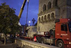 Również na wystawę w Poznaniu artyści przygotowali dzieło wyjątkowe i możliwe do realizacji wyłącznie w tym miejscu. Odnieśli się do historii dwóch budynków: dawnej synagogi przerobionej przez nazistów na pływalnię oraz kaplicy dawnego zamku cesarskiego, zniszczonej przez nazistów i przerobionej na gabinet dla Adolfa Hitlera. Hitlerowcy zaplanowali gabinet swego wodza w miejscu sakralnym aby symbolicznie spotęgować jego władzę. Zaś zmieniając synagogę w pływalnię dokonali aktu zbeszczeszczenia żydowskiej świątyni. Hoheisel i Knitz zdemontowali elementy wyposażenia basenu i przenieśli je do dawnego gabinetu Hitlera. W ten sposób dokonali symbolicznego gestu profanacji i desakralizacji tej przestrzeni władzy. Zarazem, przypominając o zbeszczeszczeniu synagogi, raz jeszcze przywrócili pamięć o zbrodniach Holokaustu.