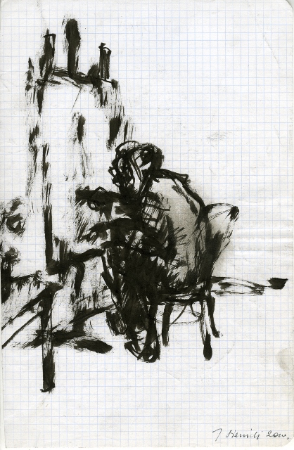 rysunek - na biały tle kartki w kratkę czarna abstrakcja