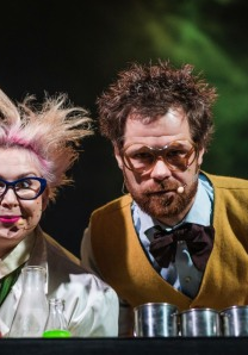 Pan Kleks przepada za wynalazkami, technicznymi nowinkami i wszystkimi niekonwencjonalnymi sposobami ulepszania (niekoniecznie upraszczania) codzienności. Niewiele osób domyśla się jednak, że wszelkie badania i innowacje dokonują się w tajnym Laboratorium. Przed nami wycieczka po technologicznym zapleczu Akademii Pana Kleksa. Szalony Docent i jego Asystentka zaprezentują w teatralnej akcji m.in. ciekły azot, ciekły tlen, polimery. Będziemy mrozić, podpalać i wybuchać, a wszystko to na styku nauki i czarów.