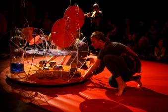Co to gra? Czy to melodia ognia czy ziemi? Wody, metalu czy drzewa? Podczas przedstawienia odkrywane dźwięki żywiołów łączą się ze słowem i akompaniamentem fletu poprzecznego. Na scenie powstaje konstrukcja z kółek, która jednoczy wszystkie elementy.