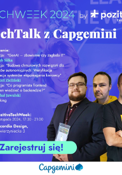 Zapisz się na TECH TALK Capgemini - wyjątkowe wydarzenie w ramach Pozitive TechWeek! Już 26 listopada zapraszamy do Concordia Design, gdzie czekają na Was 3 godziny merytorycznej wiedzy od ekspertów Capgemini Polska! https://www.capgemini.com/pl-pl/aktualnosci/wydarzenia/tech-talk-poznan-pozitivetechweek