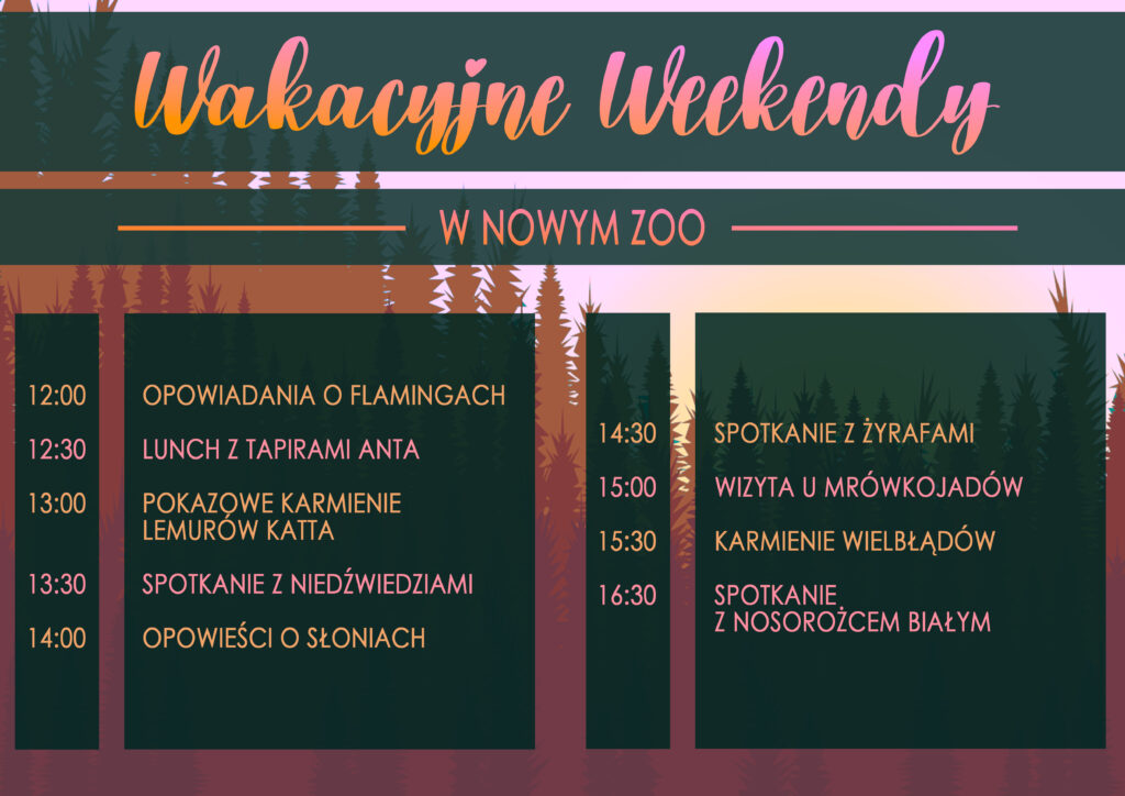 Zobacz www.zoo.poznan.pl/2022/07/01/wakacyjne-spotkania-z-mieszkancami-nowego-zoo/