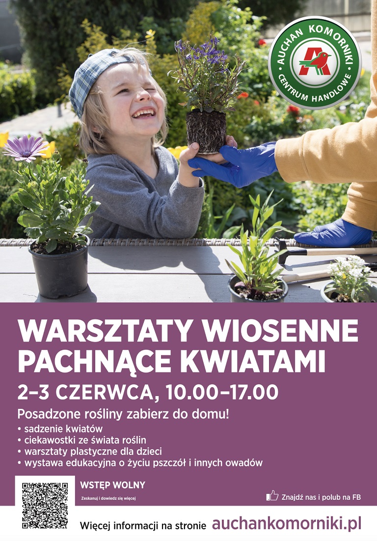Wspólne tworzenie ogrodu edukacyjnego oraz warsztaty z sadzenia kwiatów i ziół czekają na uczestników wydarzenia, które z okazji Dnia Dziecka odbędzie się 2 i 3 czerwca w Centrum Handlowym Auchan Komorniki. W programie "Wiosennych warsztatów pachnących kwiatami" jest również wystawa edukacyjna o owadach zapylających. Uczestnicy będą mogli zabrać do domu zasadzone rośliny, w prezencie otrzymają też woreczek nasion łąki kwietnej. Wstęp wolny.