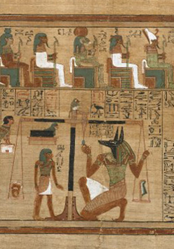 Papirus Aniego, Pisarza Królewskiego z czasów panowania Ramzesa II (XIX dynastia, ok. 1250 p.n.e.), miał pierwotnie ponad 23 metry długości. Pocięto go na 37 kawałków, kiedy został wykradziony z Egiptu w 1888 roku przez E. A. W. Budge'a, kuratora zbiorów egipskich w British Museum. Zawiera najważniejsze rozdziały Księgi Umarłych, bogato ilustrowane tak zwanymi winietami ukazującymi zmarłego i jego żonę w trakcie różnych etapów pośmiertnej drogi w Zaświaty, w tym egipski "Sąd Ostateczny", czyli ważenie serca zmarłego przed sądem Ozyrysa, władcy państwa umarłych.