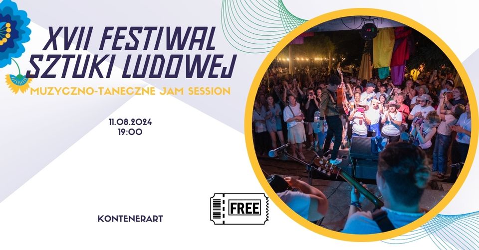 Muzyczno-taneczne jam session to wyjątkowa okazja do poznania artystów występujących podczas XVII Festiwalu Sztuki Ludowej bliżej. Przygotuj buty, instrumenty i nastaw się na wieczorną potańcówkę z: