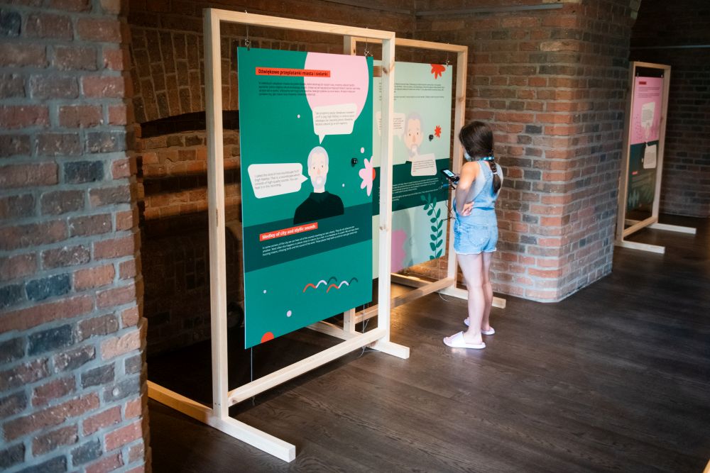 Wystawę powinno się zwiedzać z audioprzewodnikiem, który pobieramy przy wejściu. Nakierowując ten sprzęt na wyróżnione na ekspozycji miejsca, możemy odsłuchać nagrania. To pejzaże dźwiękowe, które są tak naprawdę w tym przypadku najważniejszym elementem zwiedzania. Bo celem ekspozycji jest zapoznanie najmłodszych ze zjawiskiem soundscape'u - w myśl idei, że przyjęcie innej perspektywy na świat pozwala go lepiej zrozumieć bądź poznać na nowo.