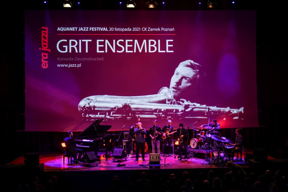 O ile dwa pierwsze utwory stanowiły reinterpretację twórczości Komedy jedynie przy nadaniu jej współczesnego języka brzmieniowego, tak będąca zwieńczeniem występu Litania idealnie zsynchronizowała się z czytanym przez Patryka Piłasiewicza Campo di fiori Czesława Miłosza. Dobitnie w kontekście twórczości Komedy i obecnej sytuacji politycznej wybrzmiały słowa poety: "I ci ginący, samotni/ Już zapomniani od świata/ Język nasz stał się im obcy/ Jak język dawnej planety./ Aż wszystko będzie legendą/ I wtedy po wielu latach/ Na nowym Campo di Fiori/ Bunt wznieci słowo poety." Choć tego dnia najważniejszy był Krzysztof Komeda, artyści formacji potrafili oddać w swoim wykonaniu własną nonszalanckość i indywidualizm, przy zachowaniu pełnej wrażliwości i zrozumienia dla twórczości poznaniaka. Trudno mi wybrać ulubieńca tego wieczoru, ale szczególnie doceniam saksofonistów Kacpra Krupę i Macieja Sokołowskiego budujących komedowski idiom iście skandynawską kreacją dźwięku pełnego powietrza - od subtelnych, romantycznych brzmień, aż po ciemne zaułki plam dźwiękowych. W wykonaniu Grit Ensemble zabrakło mi jedynie gry Krzysztofa Dysa, którego miałam ochotę usłyszeć jak najwięcej w związku z przywiązaniem Komedy do fortepianu i wybitnymi zdolnościami tego poznańskiego pianisty.