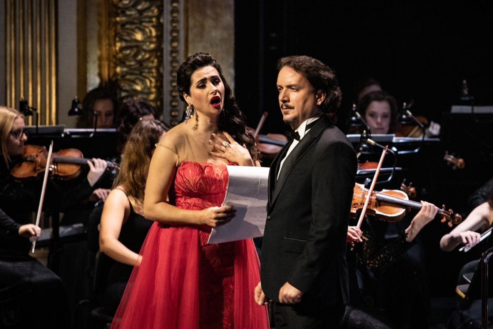 Galę, która stała się ucztą dla wokalnych smakoszy otworzył Volodymyr Tyshkov. Ukraiński bas zadebiutował w teatrze w ubiegłym sezonie podczas koncertowego wykonania Parii w Filharmonii Berlińskiej. W sobotę zaśpiewał arię z tej opery dużo pewniej i swobodniej, nośnym, dobrze osadzonym głosem. Warto docenić również jego znakomitą dykcję. Bardzo ciekawie rozwija się głos Ruslany Koval. Pojawia się w nim coraz więcej głębi i ciemniejszych odcieni, co usłyszeliśmy w arii Neali Paria! On Paria. Do jej satysfakcjonującego wykonania nie wystarczy liryzm, potrzeba pewnej dawki dramatyzmu, który Koval osiągnęła właśnie za pomocą wspomnianych elementów. Gdy partnerowała Rucińskiemu jako Violetta, znakomicie oscylowała między koloraturowym blaskiem i pogłębionym liryzmem. Po tej próbce z niecierpliwością wyczekuję jej Desdemony w nadchodzącej inscenizacji Otella. Piotrowi Kalinie zabrakło odpowiedniego osadzenia głosu, przez co traci on wiele wolumenu i ekspresji. Mam jednak nadzieję, że uda mu się właściwe tory odnaleźć, ponieważ możliwości śpiewak ma znakomite. Podobnie w przypadku Małgorzaty Olejniczak-Worobiej, której trudności nastręczały koloratury w arii Hanny ze Strasznego dworu oraz dysproporcje między rejestrami.