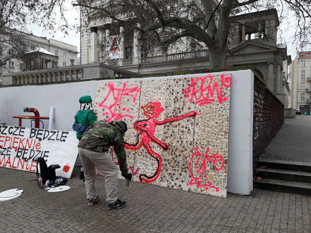 Artyści nie tracą ducha wolności mimo pandemicznych ograniczeń. Piotr C. Kowalski z grupą współpracowników zorganizował plener malarski na placu Wolności.